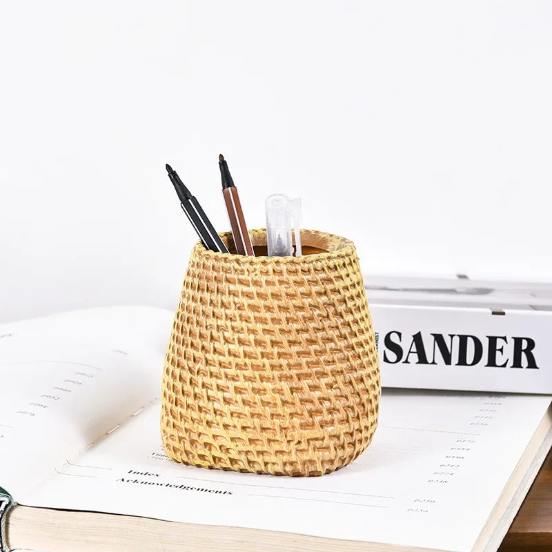 Simple Vine Pen Holder Home Office Minimalism Rattan Pen Holder Stationery Storage Plastic Tableware Holder Desk Accessories